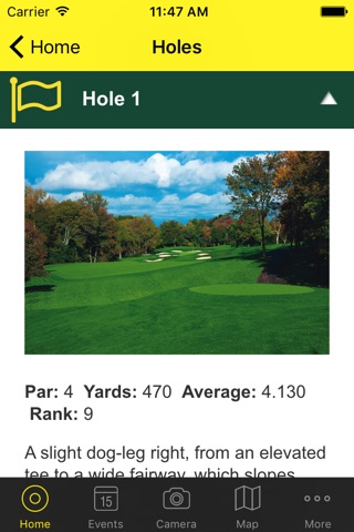 • COURSE OVERVIEW – Detailed course information with imagery and hole-by-hole descriptions, including par and yardages of Muirfield Village Golf Club’s prestigious 18 holes.
