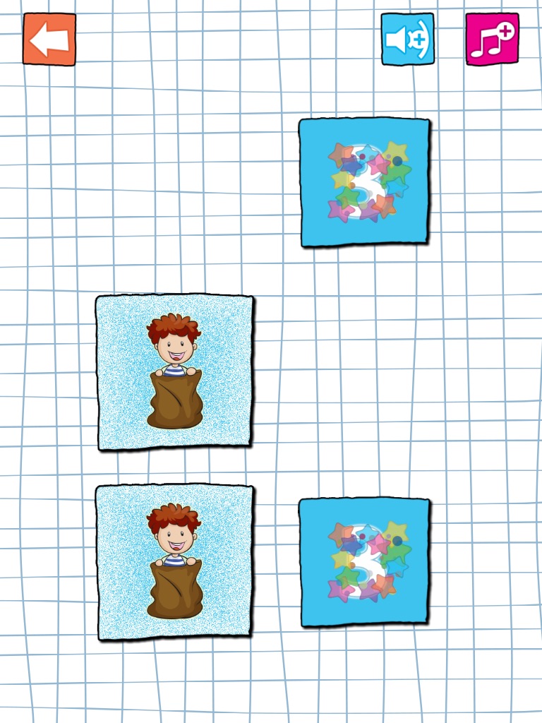 A memory cards game with funny pictures combining short term memory and basic math capabilities: