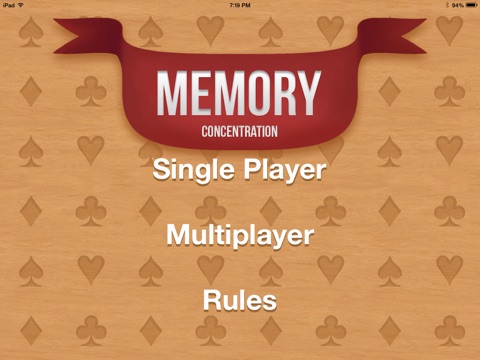The classic Concentration Memory card matching game. Play single player or against your friends through Game Center.