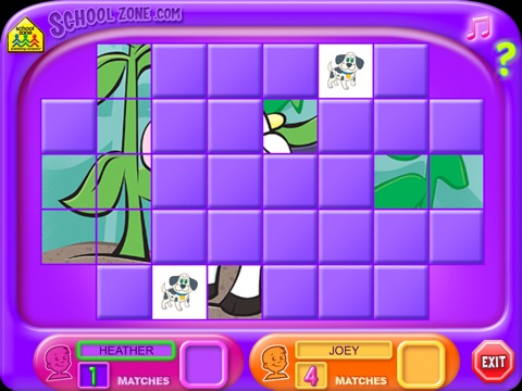 How good is a player’s memory? Touch any square to “turn it over” and see the picture, and touch another square to find a match. Kids can compete with a friend in two-player mode or play against a built-in opponent. The child goes first by touching on two cards, which automatically flip over to show the pictures on the front sides. Players hear the picture name spoken out loud. If the two pictures match, then that player wins the pair and plays again. If they do not match, they are automatically turned facedown again, and play passes to the built-in opponent or the second player. Play continues until the last pair is matched. The winner is the player with the most pairs, with possibility of a tie for first place. An added feature is a mystery picture concealed behind the game board. Each match uncovers part of it. Finishing the game reveals the whole picture! How fast can the player pair up all the cards?