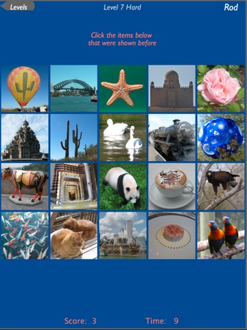 This app combines together a wide range of different memory tests, from matching in pairs to running mazes. With eight major types of game using different sets of things to recall and up to 9 levels, on both easy and hard settings, there are over 500 different levels but it gets challenging on the higher levels!