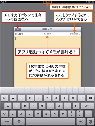 ◎アプリの起動(立ち上げ)と同時にすばやくメモが書ける。