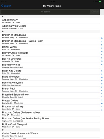 This is the Ultimate Mendocino and Lake County Winery Finder Application for all wine enthusiast and hobbyist. Our application contains data contact information on hundreds of wineries in Mendocino and Lake County, California. At a touch of a finger, you can easily find the address, phone number and website on many wineries, vineyards, tasting rooms and cellars throughout Mendocino and Lake County, California.