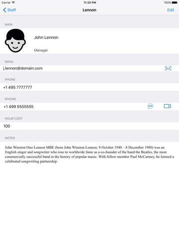 The application lets you keep a list of staff.
