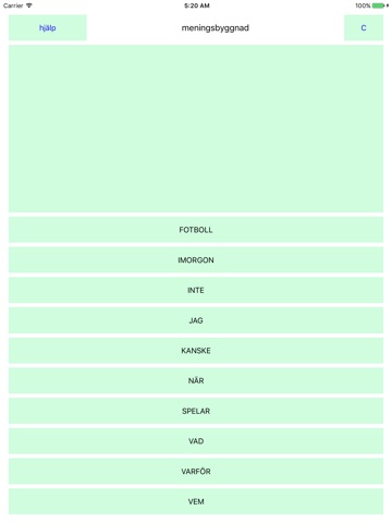The app "meningsbyggnad" is for learning in what sequence to arrange the words in some basic kinds of sentences in the swedish language.