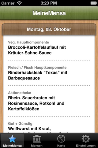 Greife schnell und einfach auf den aktuellen Speiseplan deiner Mensa in Bonn zu. Speisepläne sind für die Uni Bonn sowie HS Bonn-Rhein-Sieg verfügbar. Des Weiteren kann auf einer Karte der Standort der jeweiligen Mensa abgefragt werden.