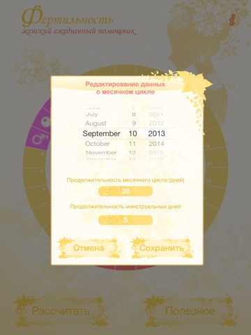 Перед Вами "Женский ежедневный помощник". Это приложение позволяет планировать менструации и наилучшие даты для зачатия ребенка.
