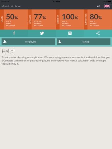 We were trying to create a convenient and useful tool for you :) Compete with friends or pass training levels and improve your mental calculation skills. We hope you will enjoy it.