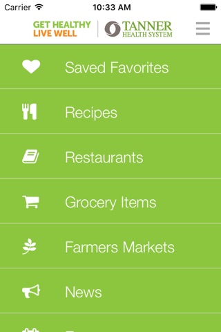 Tanner Health System’s Get Healthy, Live Well app helps you find and choose healthy food options fast. Whether you are dining out, shopping at the grocery store, searching for a new recipe or looking for a local farmers market, Menu It will point out healthy dishes on the menu and guide you in your food choices.