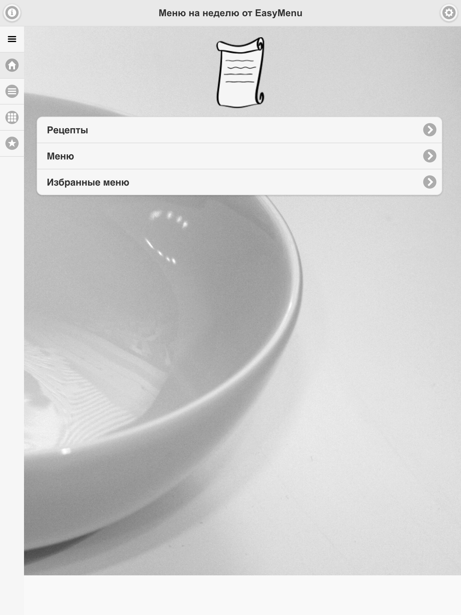 В приложении нет ни рецептов, ни меню