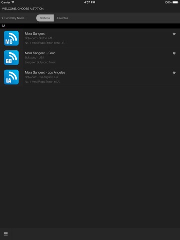 Mera Sangeet (www.merasangeet.com) is No. 1 Hindi/Bollywood/Desi Radio Station in the US. 24 X 7 Bollywood music, live RJs, news and more. Listen to Hindi radio for free, particiate in contests and win prizes. For song request and live interaction call 1-800-471-8987. Favorite Bollywood radio station for every generation. Connect with the largest South Asian community in the US. The app will give you access to 3 station i.e. Mera Sangeet (main station), Mera Sangeet West Coast (LA), and Mera Sangeet Gold (songs from the golden era).