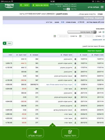 o מידע מורחב על כל תנועה – בלחיצה על הפעולה