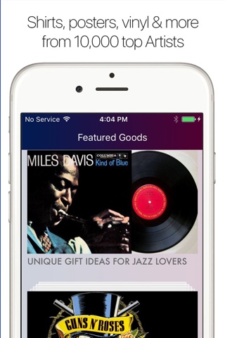 Want to cut right to the items you’ll love? Connect Apple Music or Facebook for personalized recommendations of great merch from your favorite bands - like Bandsintown and SongKick but for band merch.