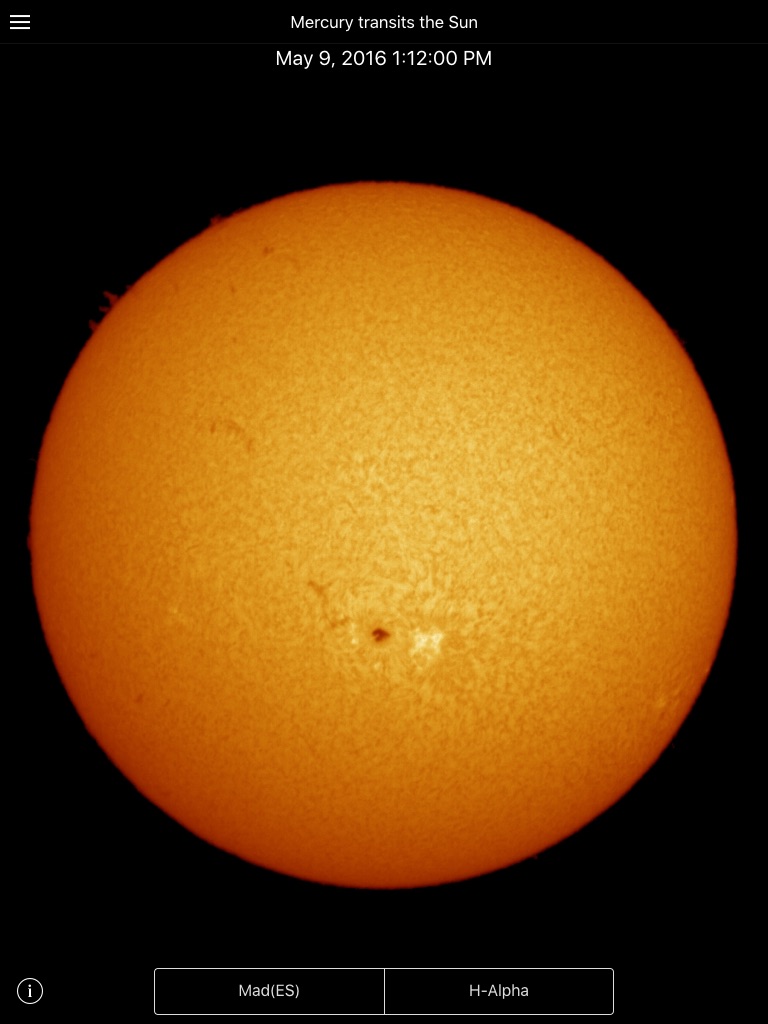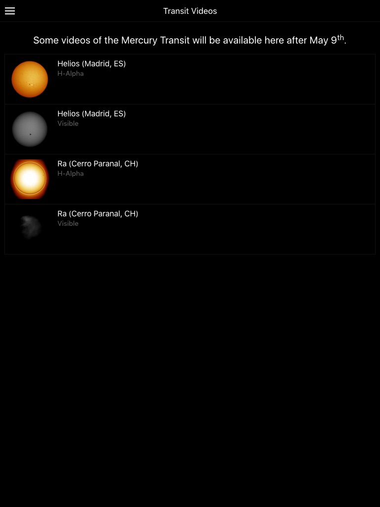 The app also shows some of the best time-lapse videos of the Mercury Transit that occurred on May 9th and the Venus transit in 2006.
