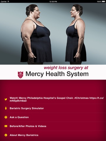 The Mercy Bariatric app is a free app to help you on your weight loss journey to a happier, healthier you. Explore what to expect before, during and after bariatric surgery as well as the multiple minimally invasive procedures available today including gastric bypass, gastric banding, sleeve gastrectomy and revisional surgery.