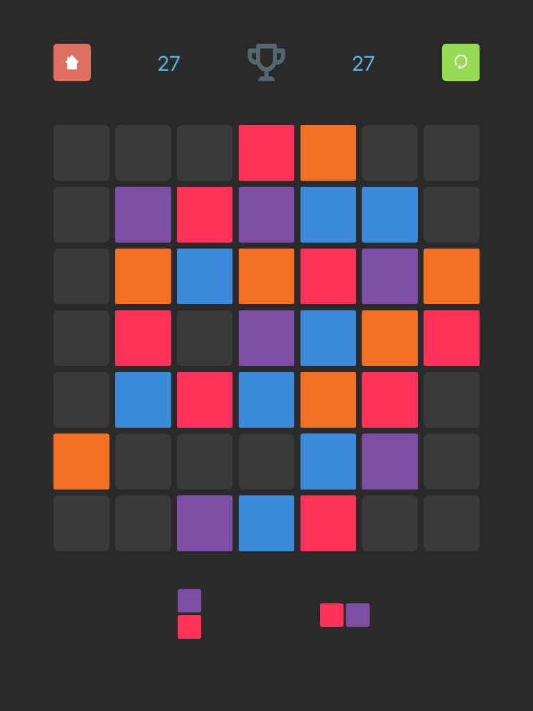 Place three same colors next to each other to merge them,horizontally, vertically, or both.