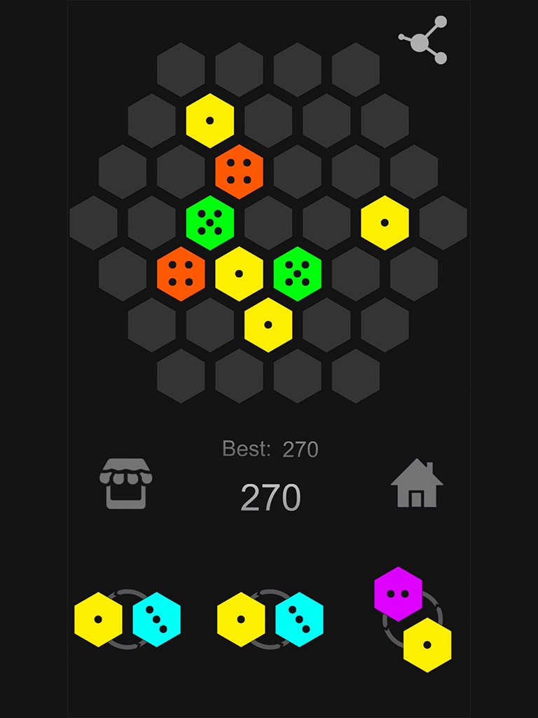 You can control the bottom of the screen the three hexagon group drag to the top of the board.If you click on the hexagon group will rotate. If there is connected to three or more than three the same number of hexagonal adjacent will upgrade to a higher number of squares, "M" is the final number, if three or more than three connected will be completely removed.