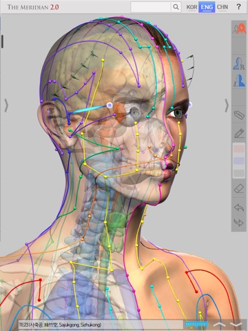 - Easily compare the ‘Main Acupuncture Points’ and its ‘Superficial Meridians’ with the skin, muscles, vessels, bones and organs.