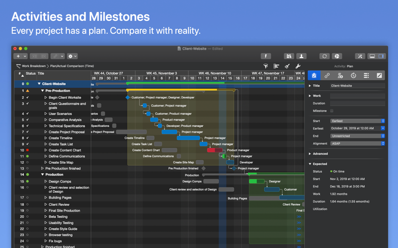 Merlin Project is the professional tool for the project manager on Mac, iPad & iPhone. Customers in over 160 countries rely on this practical software. Merlin Project provides you with answers to all your questions about planning, controlling and monitoring your projects. Try the extensive functions free of charge for 30 days.