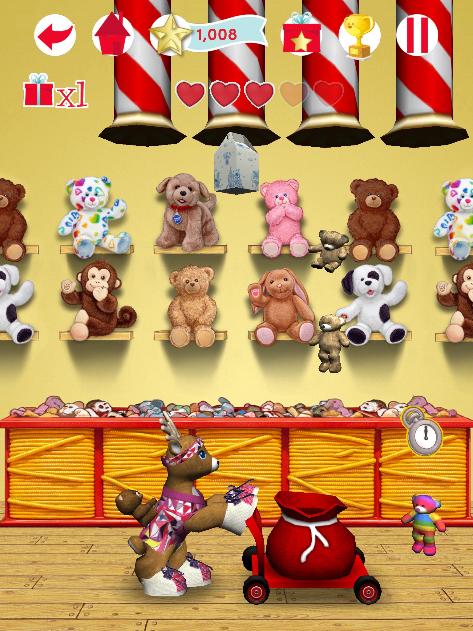 Enjoy “Reindeer Runner” for free OR scan one of the Official Medallions from Build-A-Bear Workshop for access to all games and the Reindeer Stables. Don’t have a Medallion? No problem. With an in-app purchase, you can buy enough stars to unlock Reindeer, stable items, and all the games.