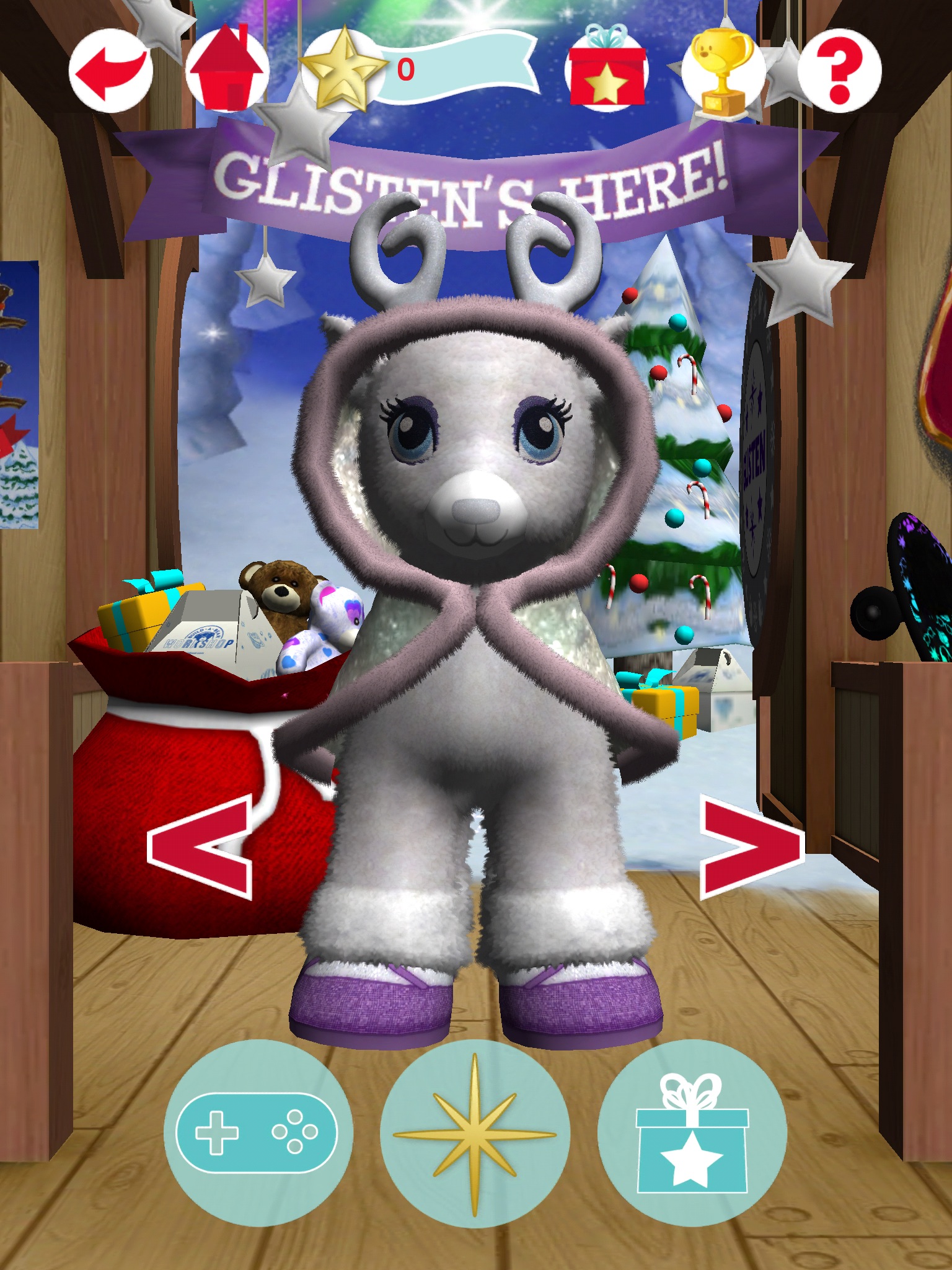 • Unlock the Reindeer Stables, “Gift Grabber” and “Santa’s Flight Trainer” with an Official Medallion sold at Build-A-Bear Workshop, or with an in-app purchase