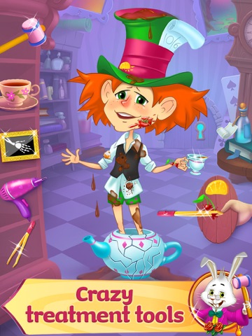 Alice needs your help to find her way home! Watch Alice shrink and grow as she drinks the magic DRINK ME potion and unlocks mysterious doors. Along the way, treat Alice and her friends, the Mad Hatter, the Cheshire Cat and the Queen of Hearts with special tools! Play hidden objects games and overcome crazy challenges. Earn stars and advance to new levels as you successfully complete each activity!