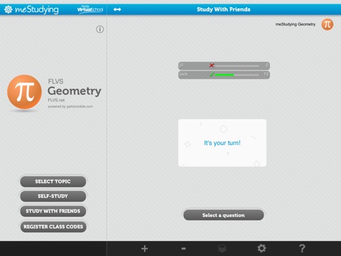 Just like the apps you’ve come to know and love, each topic app features a Self-Study mode with questions, quizzes, and immediate, detailed feedback. The competition begins when you match wits against challengers in Study with Friends mode. You can study with up to three friends in this mode.