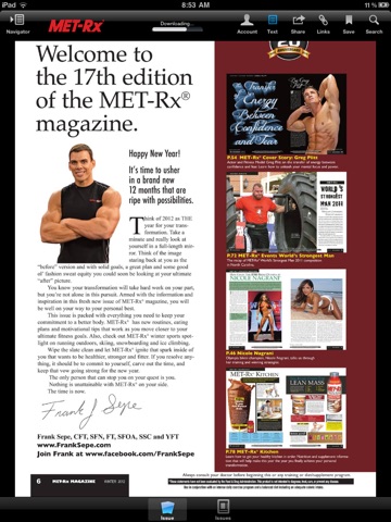 MET-Rx continues to be on the cutting-edge of sports nutrition with a new, custom publication appropriately named MET-Rx Magazine. Every issue showcases MET-Rx athletes, products and events, and is jam-packed with special features including diet plans, supplementation ideas, weight training techniques, athlete/celebrity profiles, great-tasting recipes and much more! Get your FREE MET-Rx Magazine app today!