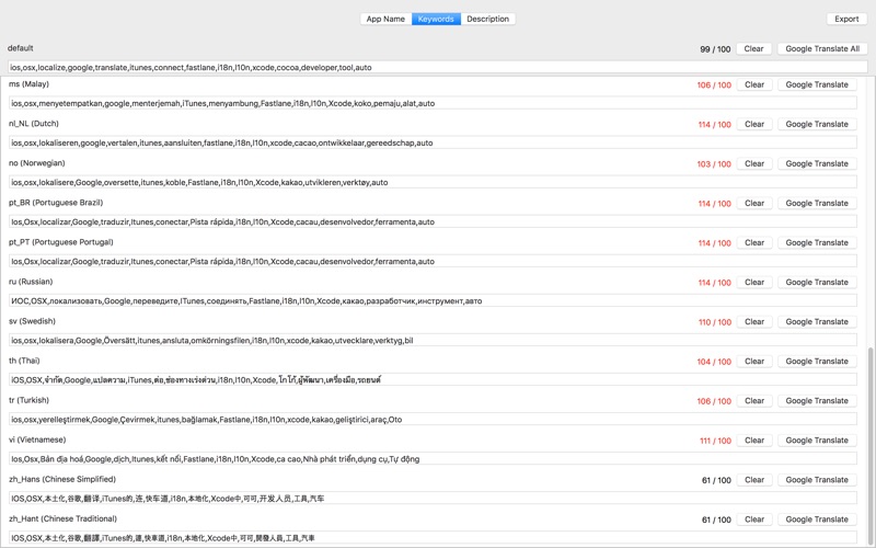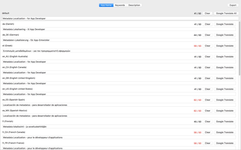 Metadata Localization is an app that translates using google translation. The translated output can be saved in a format usable by fastlane.