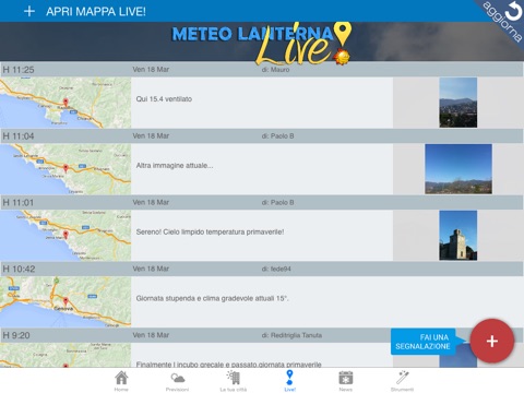 - Il social Meteolanterna Live! con tutte le informazioni sul meteo e le segnalazioni in tempo reale dove anche tu puoi partecipare direttamente dallapp o dal sito www.meteolanterna.net/live