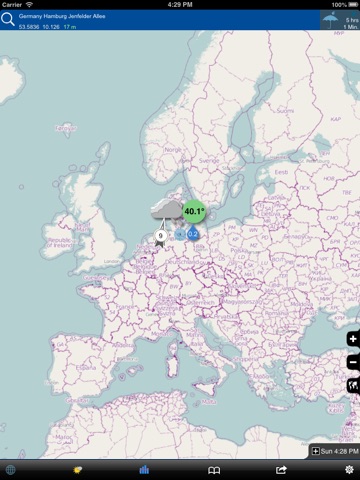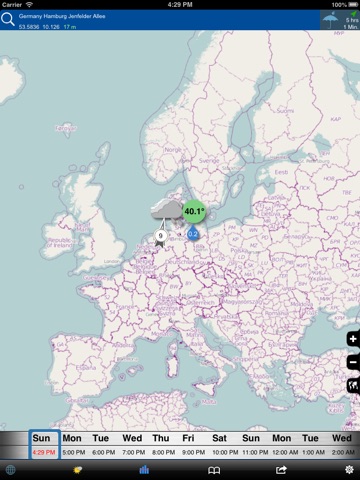 Die Beschreibung ist ja echt dicke Hose - aber die Daten sind echt der Hammer. Man kann mit einer Zeitleiste in die Zukunft reisen und einen Wetterbericht dann per email verschicken oder auf Facebook posten. besonders cool: OpenStreetMap-Karten wobei Apple-Karten auch nicht schlecht wären. Die App ist schlicht aber hat viele Informationen und Einstellungen. Die Proversion hat keine Werbung und mehr Tage in die Zukunft und man kann soviel Favoriten anlegen wie man will.