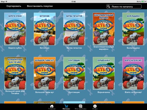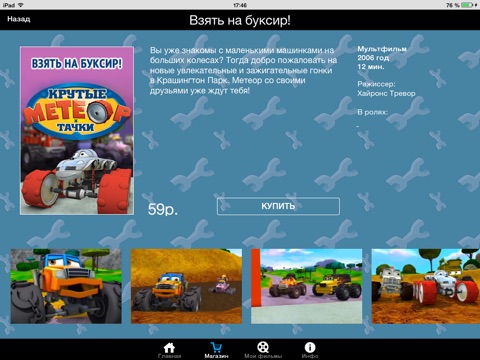 Приложение предоставляет доступ ко всем сериям мультсериала «Метеор и крутые тачки», снятого по мотивам произведения Дэвида Снайдера и Билла Гросса.