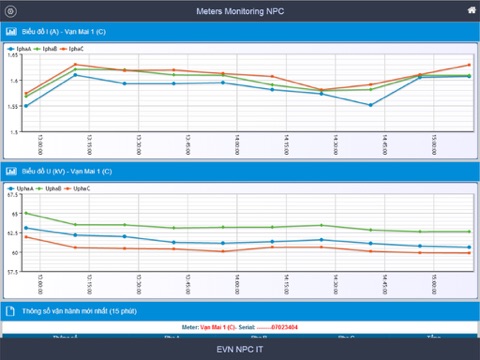 - Thông số mới nhất gồm: chỉ số U, I, P,Q, Cosphi (15 phút/1 lần); chỉ số công tơ (60 phút/1 lần)