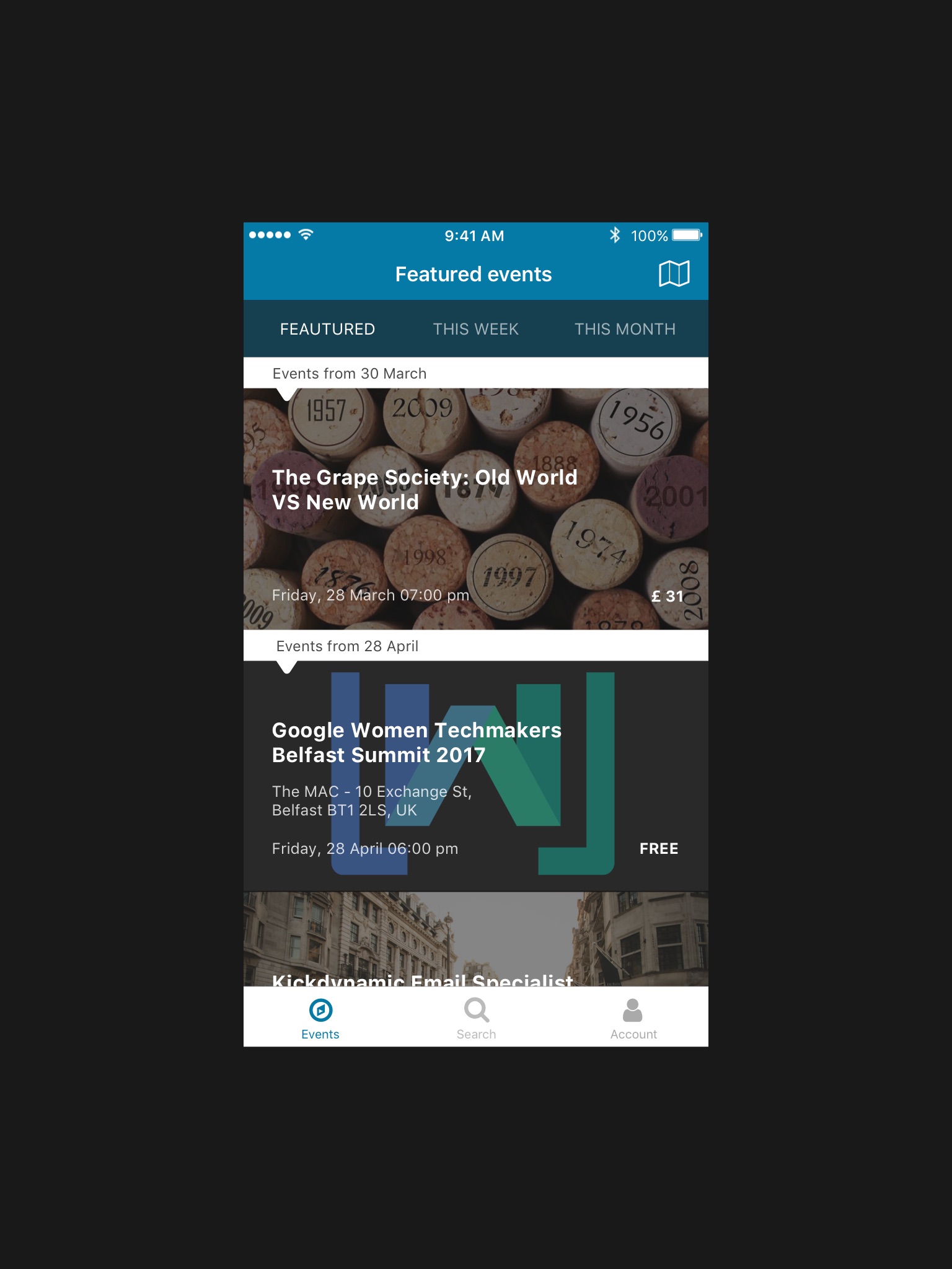 - Discover and pick events, around you or by city