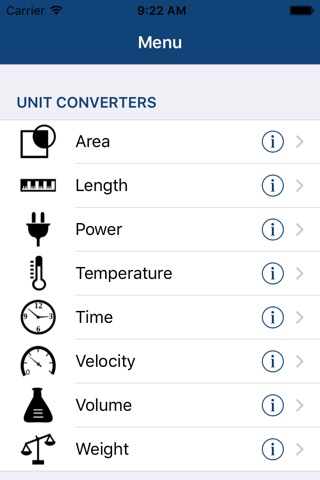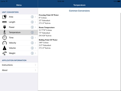 - Converts 83 distinct units and 14 prefix multipliers across area, length, power, temperature, time, velocity, volume, and weight categories.