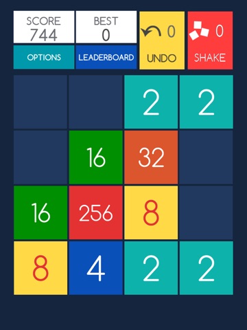 We added two great bonuses in this game - UNDO function and the ability to SHAKE all tiles to mix them and get better positions for victory.