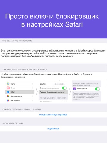Если вам надоело каждый раз смотреть ролик чтобы войти в интернет в Московском метро, то это приложение решит вашу проблему раз и навсегда. Установите его, включите блокировку в настройках Safari и наслаждайтесь мгновенным доступом в интернет.