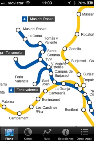 Gracias a Metro Valencia podrás llegar a tu destino utilizando la linea más adecuada. Si hasta ahora el plano era tu única fuente de información para moverte, ahora con Metro Valencia podrás localizar estaciones cercanas al lugar donde te encuentres, estaciones cercanas a una dirección que tu definas, calculador de rutas mostrando los transbordos a realizar, etc.