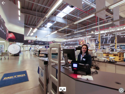 Metro VR Ervaar onze nieuwe winkel met deze 360° video/virtual reality app. Onze Metro Cash & Carry-winkels bieden een exclusieve formule voor de hospitality- en foodprofessional. Virtuele wereld Plaats je mobiele telefoon in een Virtual Reality Cardboard, een speciaal ontworpen kartonnen houder, en beleef een ultieme ervaring. De app start automatisch wanneer je je telefoon horizontaal houdt. Geen Virtual Reality Cardboard? Deactiveer de VR-modus om de app te gebruiken in de normale modus. Beweeg je smartphone om de 360° videotoer optimaal te beleven. De app gebruikt de ingebouwde gyroscoopfunctie op je smartphone.