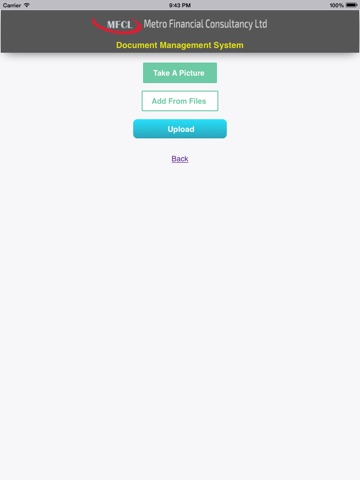 Document management system application for the clients of Metro financial Consultancy Ltd, London. Clients could use this application accesed by login details provided, to upload their documents by taking a picture on their devices or adding from their devices storage, thereby maintaining a paperless environment.