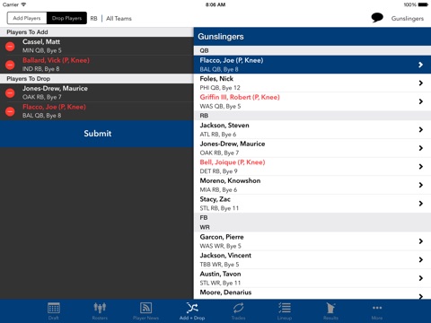 For users of MyFantasyLeague.com, MFL Mobile is the perfect dynasty companion on your road to fantasy football domination. Draft your team and manage it all season. Submit your lineup and keep tabs on all of your players with live player scoring... One universal app works great on iPhone and iPad alike!