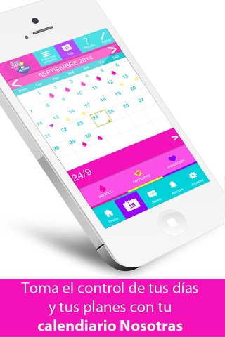 Tu Calendiario by Nosotras es un calendario muy fácil de usar, donde puedes tener el control de tu período, organizando las fechas para no perderte ningún plan, conocer tus días de ovulación y los días más fértiles.