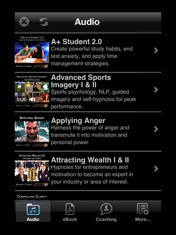 The following audio programs are available as in-app purchases and each of the Attention Shifting personal development programs have a unique process, feel, and approach designed to empower the listener. These audio programs utilize NLP (neuro-linguistic programming), Ericksonian hypnosis, meditation, binaural beats, brainwave frequencies, and guided visualization and imagery to help the listener experience personal transformation.