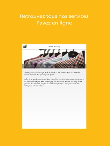 vous y trouverez tous les services proposés par Michèle Pressing ainsi que les informations de contact.