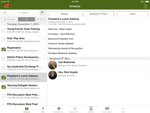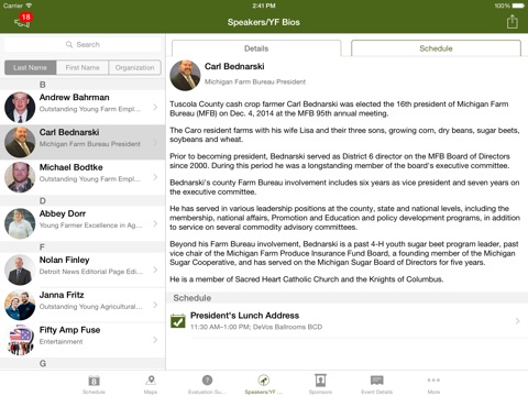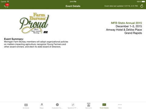 Attending Michigan Farm Bureau events is a breeze using the free Michigan Farm Bureau Event Mobile App. For major events throughout the year, it’s your go-to source for agendas, custom itinerary builders, maps, and other mobile app features.