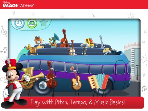 Discover the magic of learning through Disney Imagicademys latest world of creative play: Mickey’s Music Maker! Come along with Mickey and his band of silly instruments to play and create your own music.