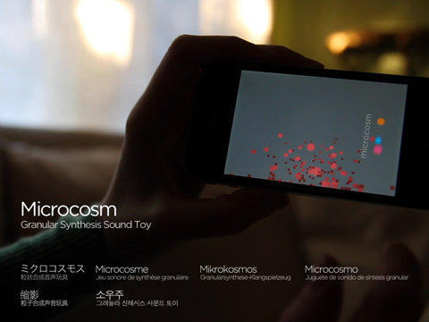 Microcosm is a sonic cloud, made of thousands of grains of sound. It works like a snow globe. Move the device in any direction and gravity pulls the particles towards earth, causing the sound to evolve. Shake Microcosm and the sound shatters into pieces. Choose from several included soundscapes.