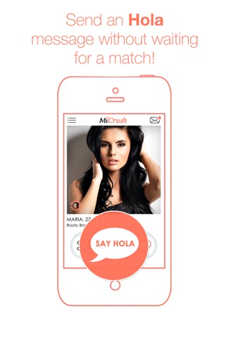 Our "Say Hola” feature allows you to send a direct message to that special someone who caught your eye without waiting for them to "Crush" you. This feature is an optional in-app purchase feature that helps you get noticed right away. Buy a pack of “Say Holas” and start communicating with your Crushes instantly.