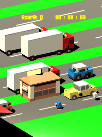 Continue to cross obstacles and score more points while dodging different color vehicles!