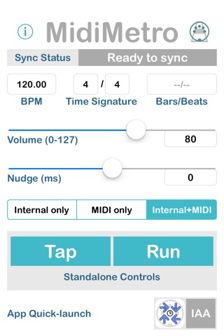 MidiMetro was designed as a companion app to the MidiBus app (keep a lookout for forthcoming bundle) in order to add reliable audible timing to the most stable MIDI clock on iOS. Syncing to the MidiBus app adds the following advantages: